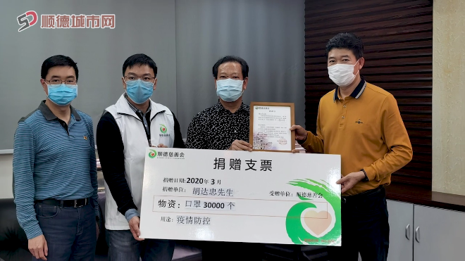 胡达忠先生作为勒流儿女中的一份子,一直情系家乡疫情防控工作。疫情期间,他多次往返顺德捐赠物资,彰显大爱,此次更以个人名义向顺德慈善会捐赠口罩30,000个(价值90,000元)驰援家乡。