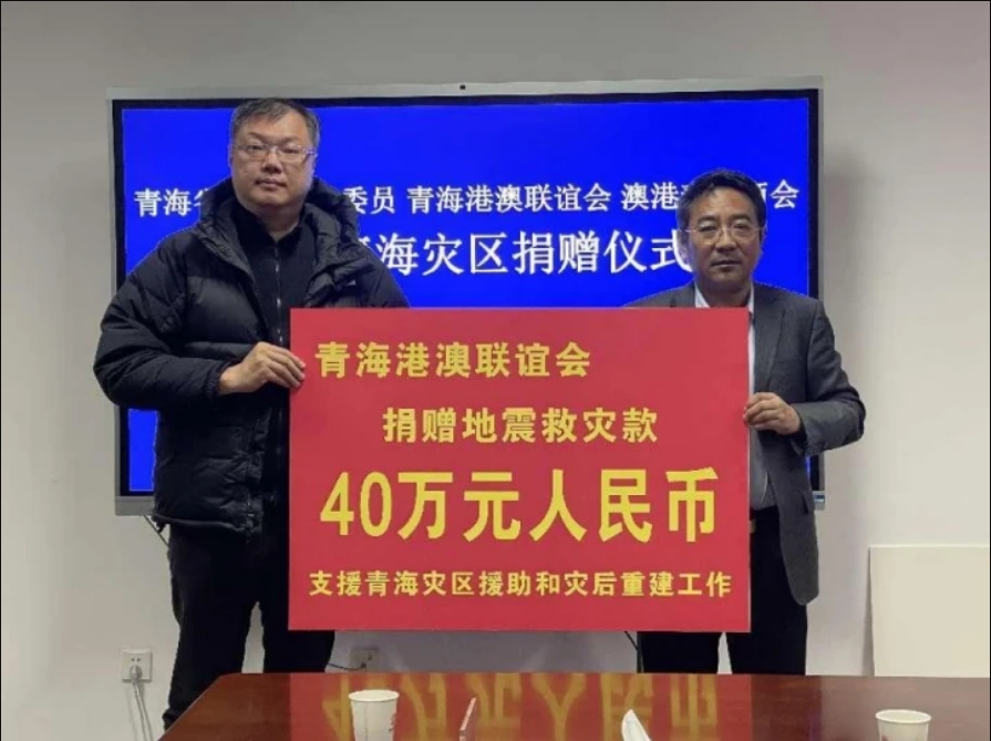 甘肃临夏州积石山县日前发生6.2级地震,造成甘肃、青海重大人员伤亡和基础设施受损。面对突发灾情,澳港青海商会、青海港澳联谊会通过青海省慈善总会分别捐赠十万元和四十万元人民币,为支持青海抗震救灾、保障当地民众基本生活需要以及灾后重建工作。