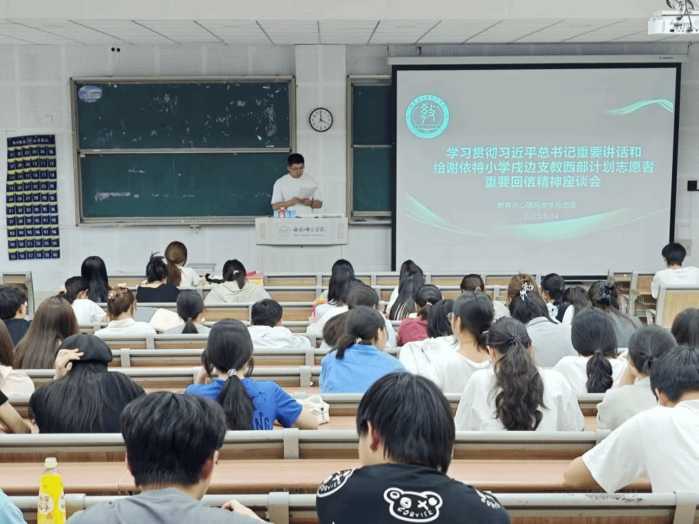 近日,教育与心理科学学院分团委在滨湖校区博学楼D101开展理论学习宣讲,传达学习团中央《关于深入学习宣传贯彻习近平总书记重要讲话和给谢依特小学戍边支教西部计划志愿者服务队队员回信精神的通知》。学院各级学生组织全体成员、各班级团支部书记参加学习,学院分团委书记吴勇主持会议。