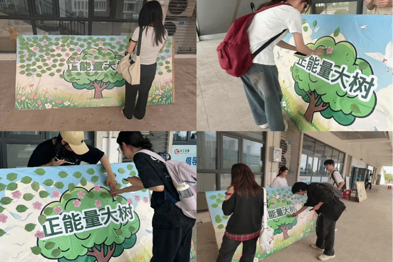 绘就心灵画卷,共赴向阳之旅。为响应学校加强大学生心理健康教育工作的号召,提升学生心理调适能力,近日,教育与心理科学学院在滨湖校区桂园餐厅门前举办“汇聚正能量,共筑心灵树”主题活动,吸引了200余名学生踊跃参与。
