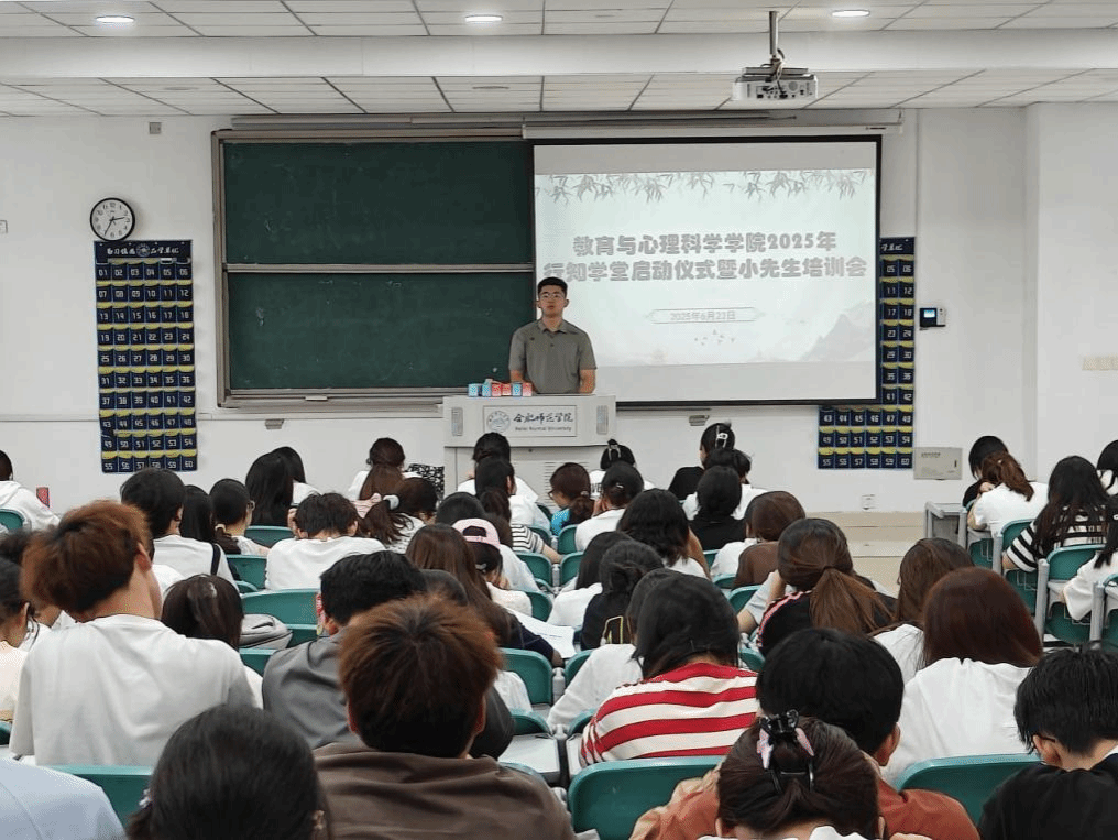 夏木成荫育新苗,启智扬帆正当时。6月23日下午,教育与心理科学学院在滨湖校区举行暑期“行知学堂”启动仪式暨小先生培训会。教育与心理科学学院分团委书记吴勇主持会议,全院三十余支实践团队的小先生骨干参加会议。