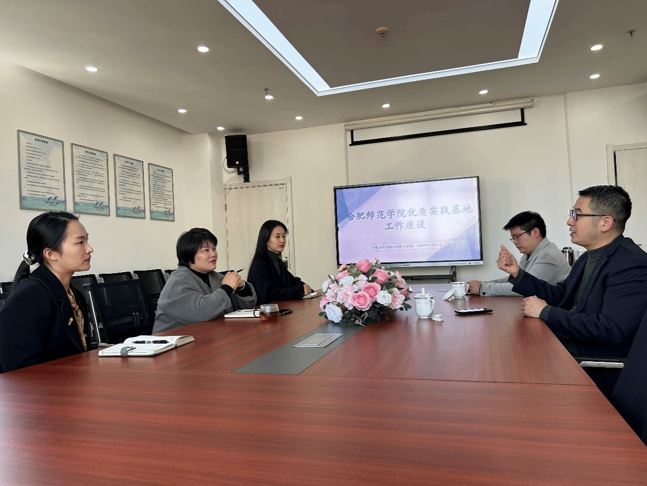 万潇就幼儿园对保教实践基地的物质环境资源配置、师范生见实习保教活动安排与专业指导与提升、师范生见实习成效成果等进行说明,并对合肥师范学院学前教育专业师范生的实践表现表示充分肯定与赞扬。王新颖就合肥师范学院对幼儿园优质实践基地建设的长期合作指导表示感谢,并就下一步继续扩大优质实践基地建设数量和规模提出建议。