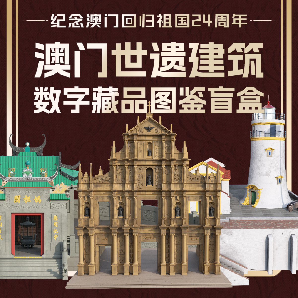 在澳门回归祖国24周年到来之际,澳门自强文创智库联合北京元气星空科技有限公司将于2023年12月20日回归纪念日当天在蚂蚁数科旗下鲸探平台发行“大三巴牌坊”、“妈阁庙”、“东望洋灯塔”三款3D数字藏品图鉴盲盒,用户将通过全新方式体验了解澳门的历史文化。